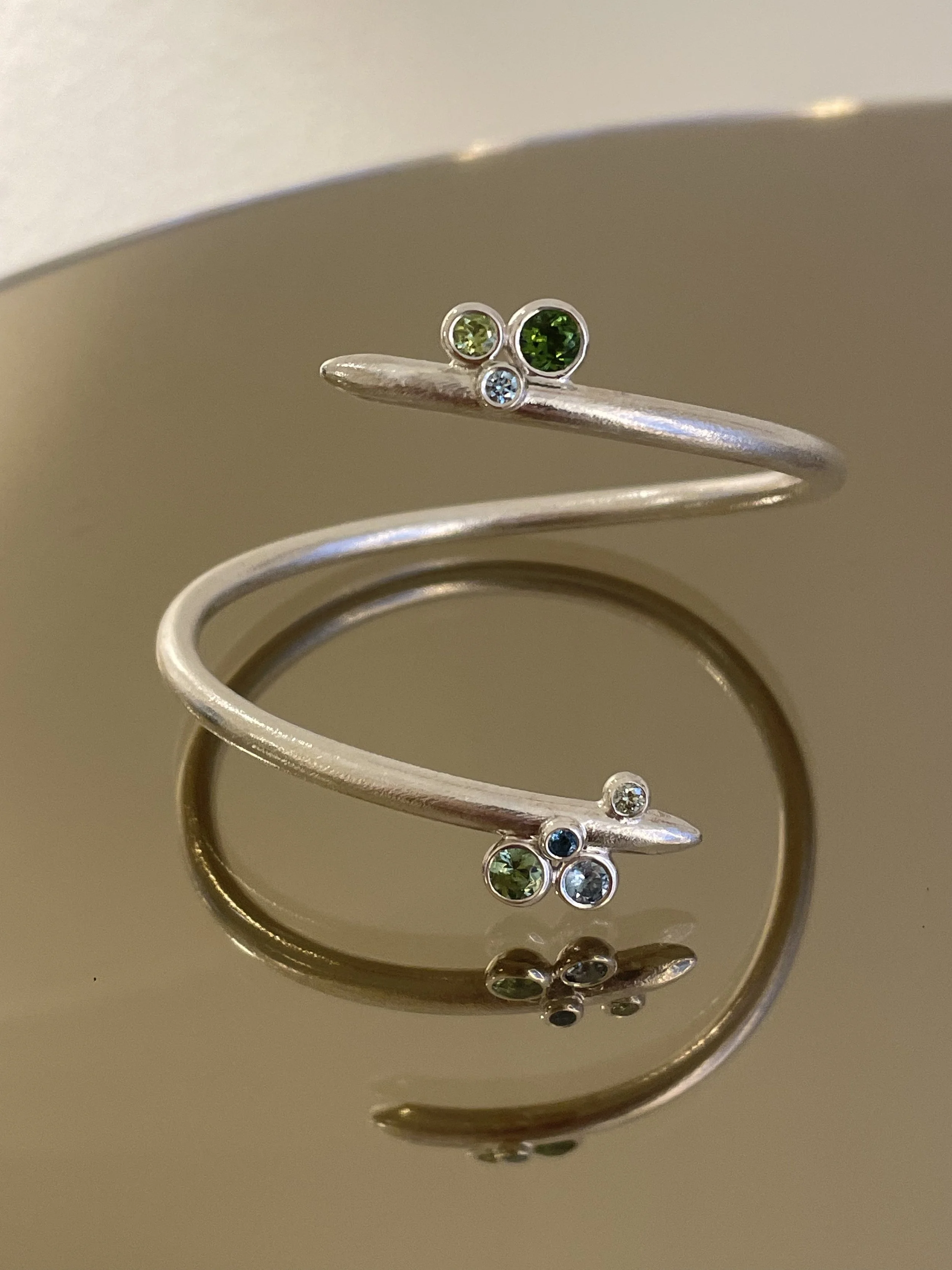 SIDE BY SIDE armring i 925 Sterling sølv med brillant, turmalin, topas og peridot. Lignende laves med alle typer sten.