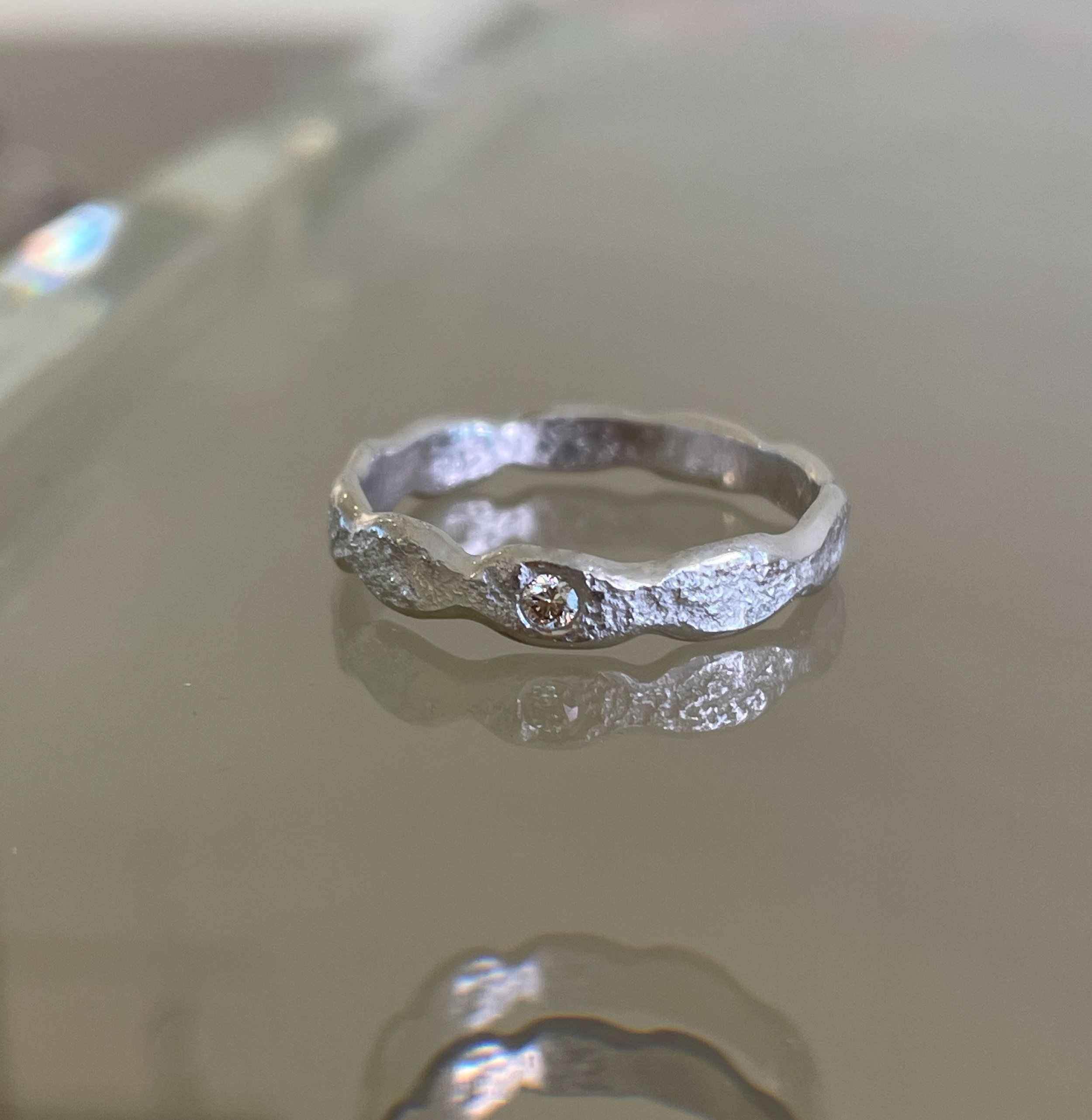 LA BLONDE unika ring i 14 kt hvidguld med champagnediamant